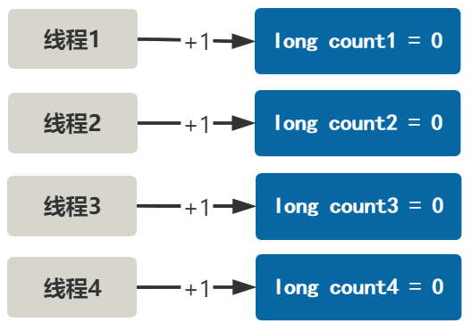 这样的话,每个线程不存在竞争的问题,过一段时间,获取最终的值,只需要把它们相加即可。