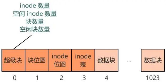 我们就再占用一个块来存储这些数据吧!我们把它放在最开始的块上,并把它叫做超级块。