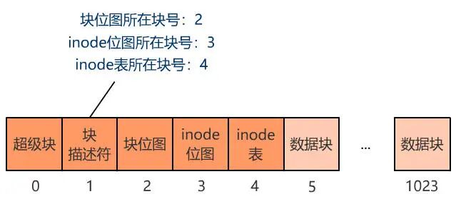 块描述符:块位图,inode 位图,inode 表所在的块号