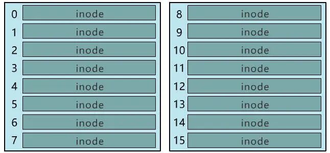 如果一个 inode 为 128 字节,那么一个块就可以容纳 8 个 inode,如果觉着 inode 数不够,可以用多个块来存放 inode 信息。
